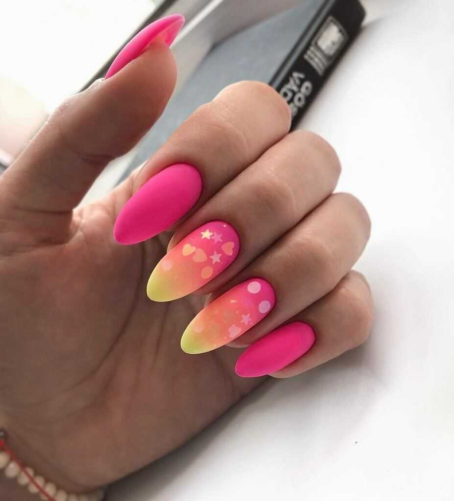 Омбре — универсальный дизайн ногтей, который подходит к любому образу. Он отлично смотрится на любой длине и форме ногтей. Главное — выбрать подходящий оттенок, чтобы визуально не сделать пластину более широкой и короткой.