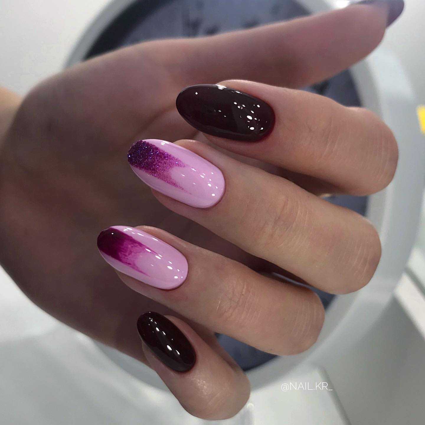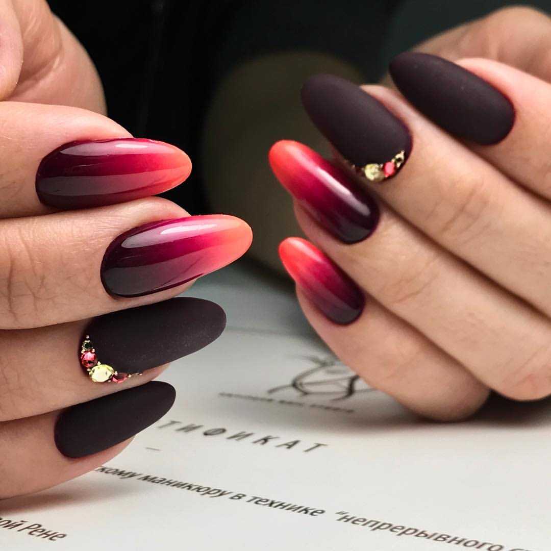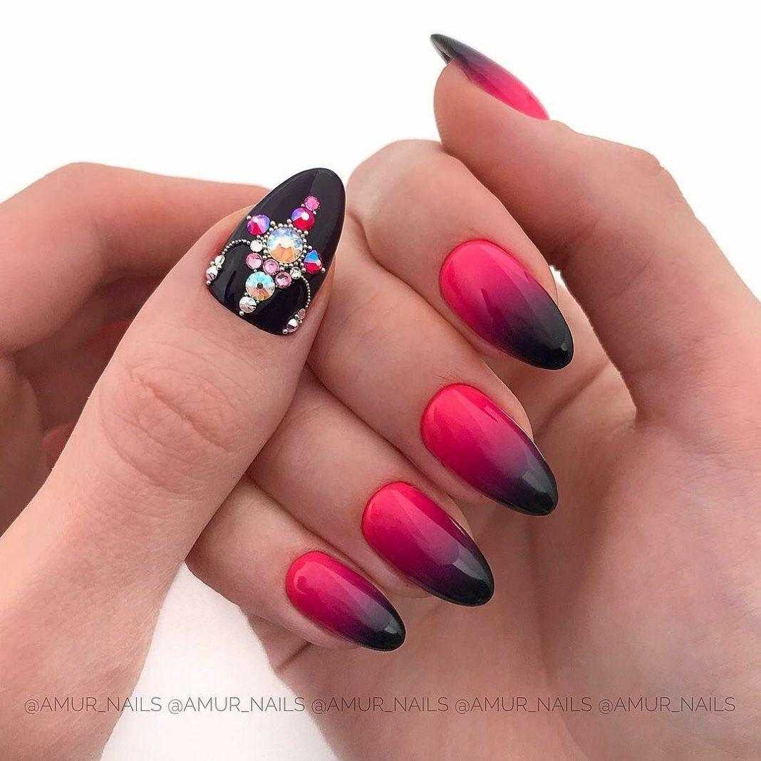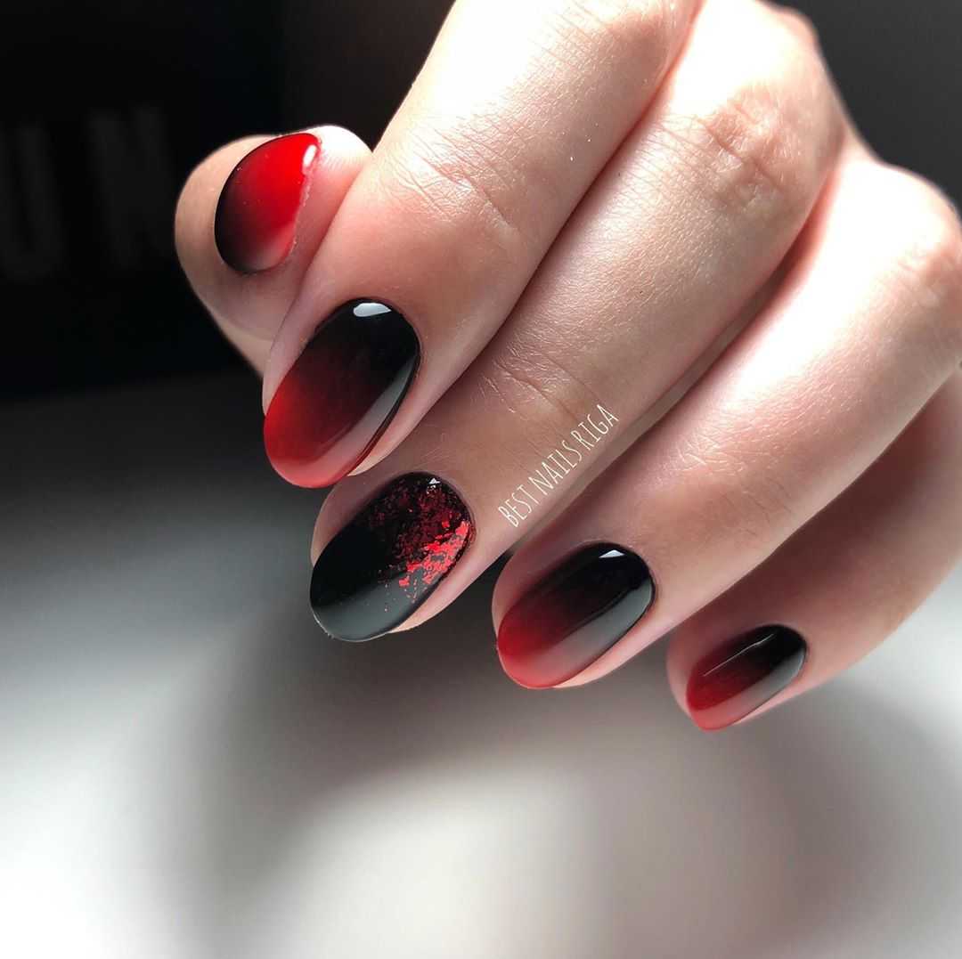 Черный цвет хорош тем, что сочетается практически с любыми оттенками. Особенно удачно это свойство проявляется в градиентном маникюре. Лучшим дополнением черного цвета считается бордовый. Этот тандем смотрится благородно и дорого, великолепно вписывается в торжественные образы. Также черный цвет прекрасно гармонирует с фиолетовым, синим, бежевым, красным и другими тонами.