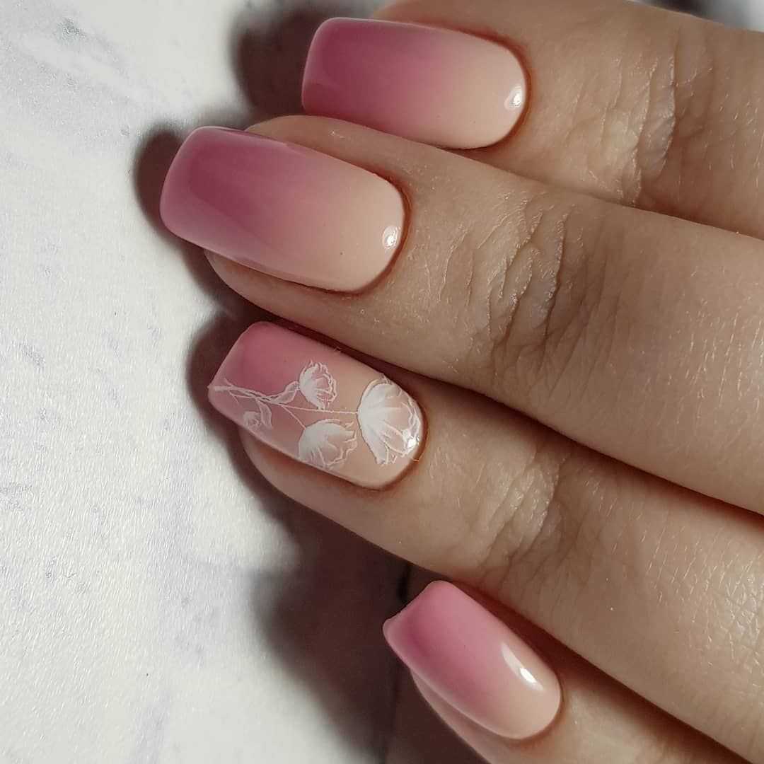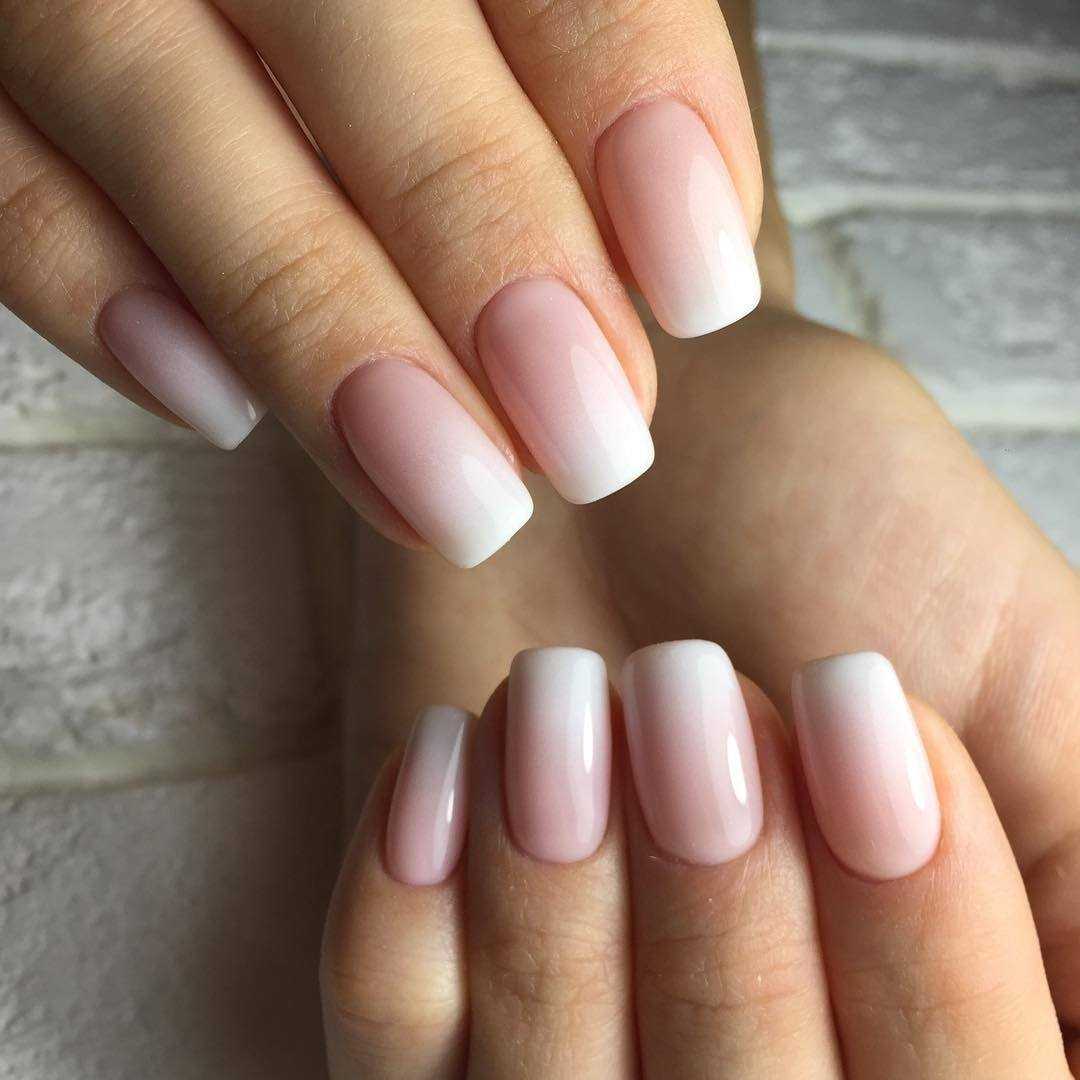 Хорошим вариантом станет однотонный дизайн, френч или легкий градиент с максимально естественными цветами: розовым, молочным или бежевым.
