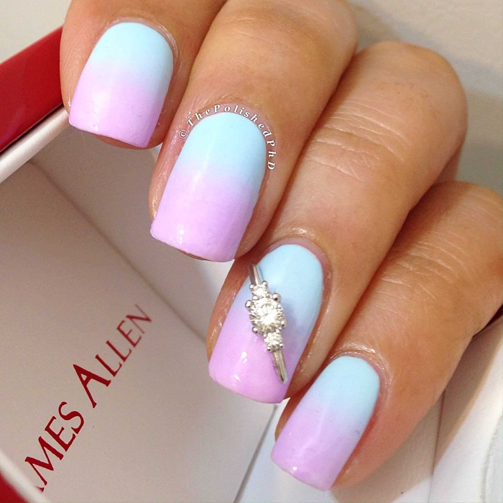Пастельный молочно-сиреневый градиент на ногтях может стать идеальным фоном, на котором можно выделить яркие элементы или блестящие украшения. Разве вы не любите стразы, блестки и фольгу? А молнии – это последний штрих, который завершит ваш дизайн ногтей.