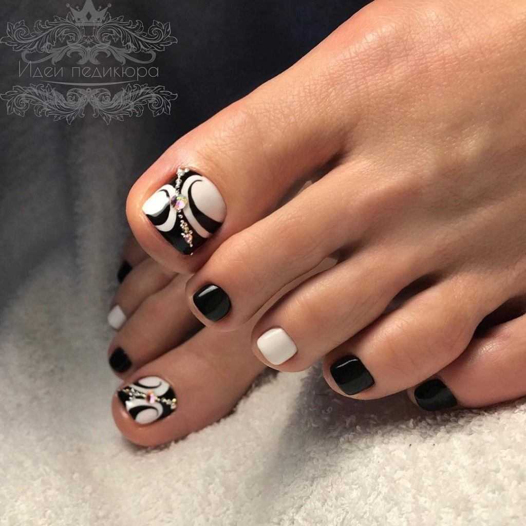 Здесь важно только ваше желание и творческий подход. Чёрно белый педикюр также будет смотреться выигрышно, ведь это классический вариант