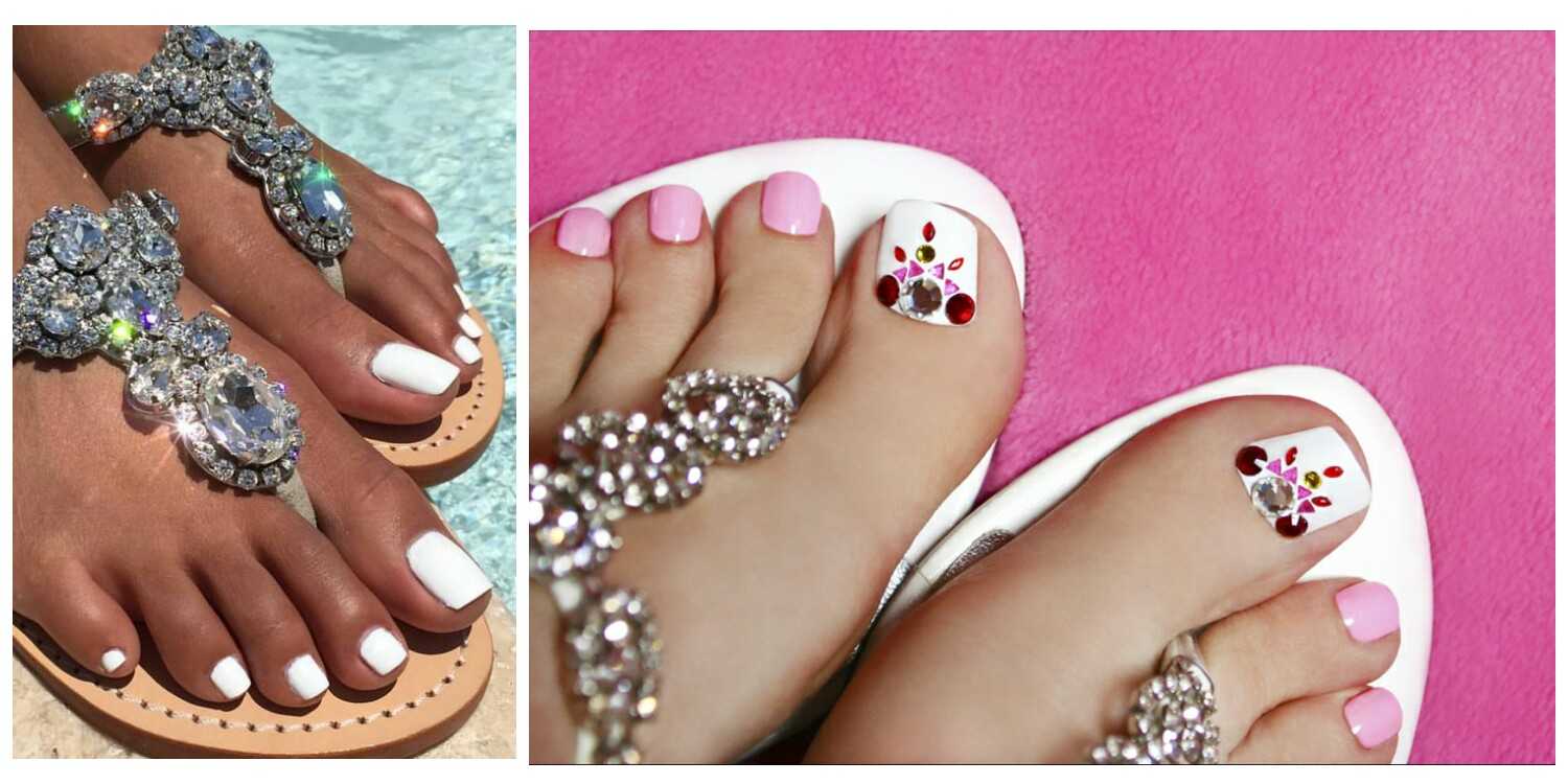 Однотонный белый – довольно рискованный вариант. Дело в том, что, как уже упоминалось, ноги и ногти должны быть в идеальном состоянии