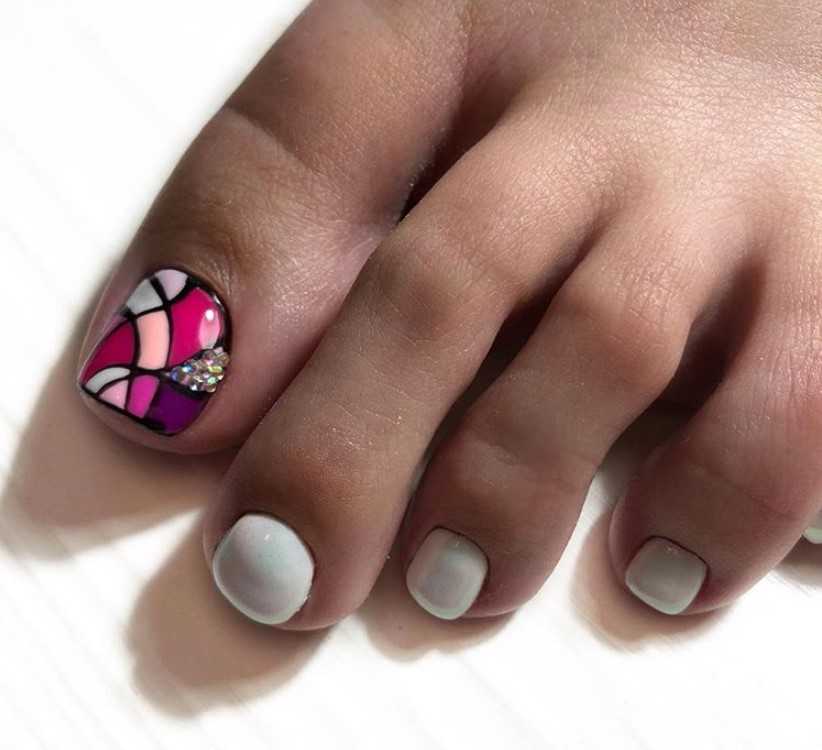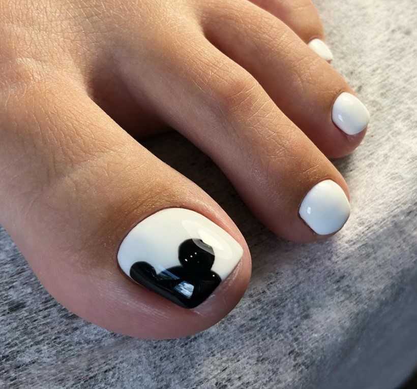 - рисунки – ногти на больших пальцах ног могут стать холстом для художника, в этом сезоне модными остаются рисунки в мультяшном стиле, надписи, примитивные силуэтные изображения, абстракция;