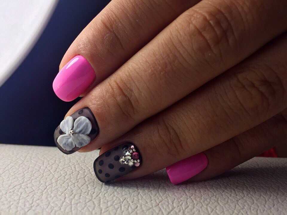 Самые распространенные варианты черно-розового нейл арта это: