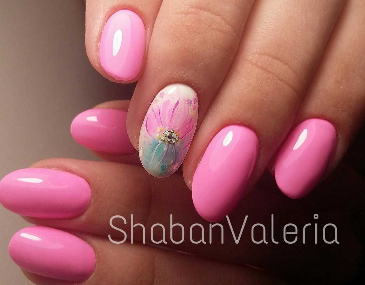 Розовый маникюр с дизайном