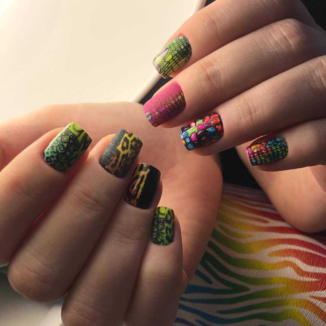 - Анималистичный принт. Топовый дизайн, который выделит длинные квадратные ноготки, подчеркнет их идеальную форму. Тигровый, леопардовый, змеиный и крокодиловый принт на таких ногтях подчеркнет стиль образа.