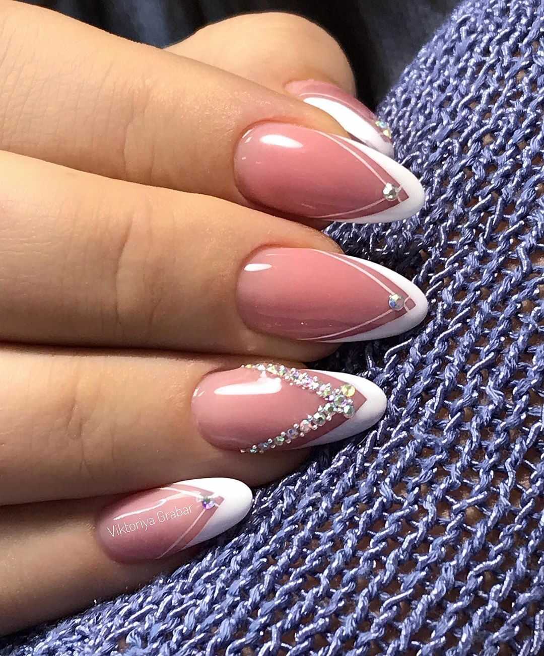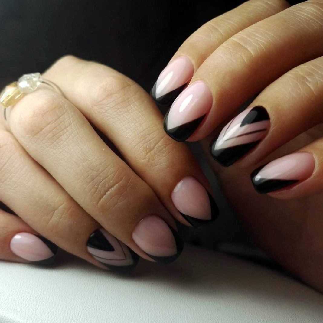 Не менее стильный вариант – сочетание двух классических видов дизайна. То есть френч и лунный маникюр треугольной формы. При необходимости можно дополнить его рисунком или небольшим количеством декора. Нейл-мастера отмечают, что это один из наиболее популярных вариантов 2019 года.