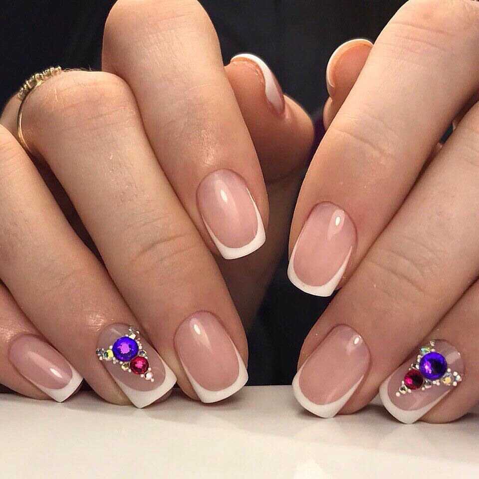 классические белые кончики в сочетании с естественной ногтевой пластиной;