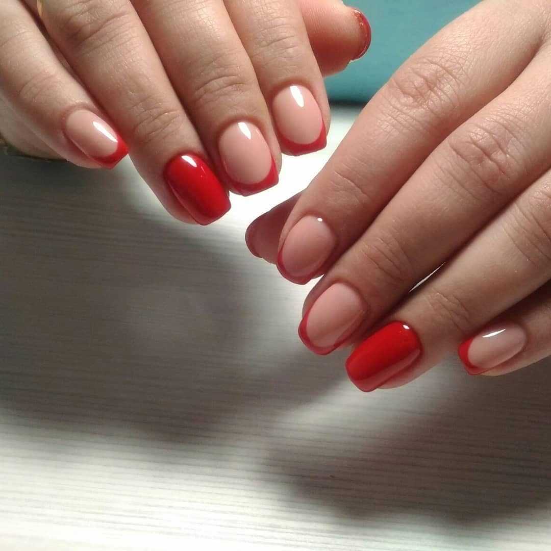 Цвет страсти, импульсивности и неиссякаемой энергии. Красный френч никогда не выйдет из моды, за счет своей уникальной способности дополнять образ с любыми платьями. Особенно будет красиво, если одежда будет в цвет с маникюром. Но в таком случае понадобиться слегка разбавить френч, например, белым или черным.