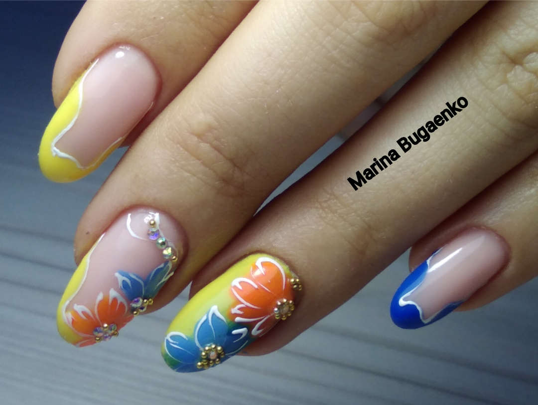 Также принт может использоваться для 1-3 пальцев рук, а остальное покрытие остается однотонным.