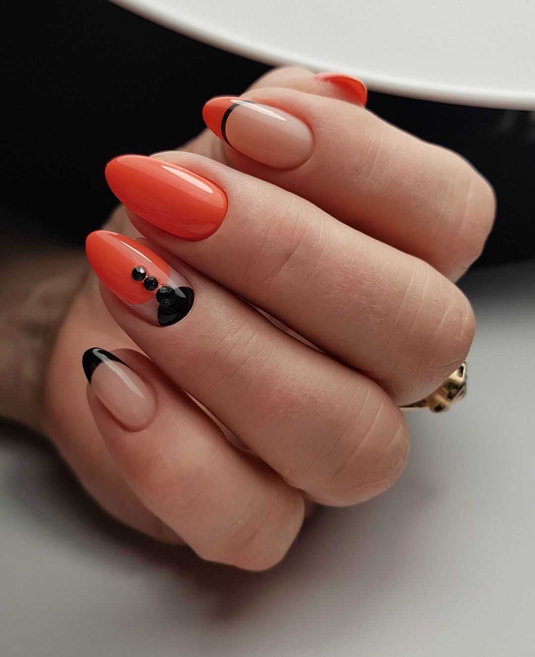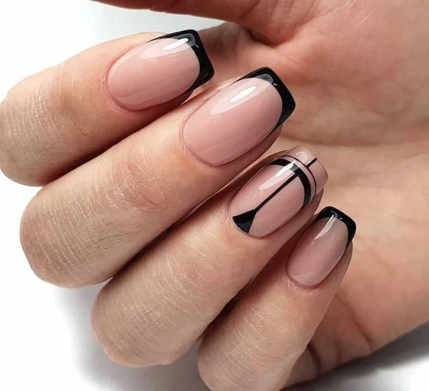 Френч в черном цвете будет привлекать повышенное внимание со стороны, поэтому будьте к этому заранее. С черным цветом превосходно сочетается белый, красный и другие