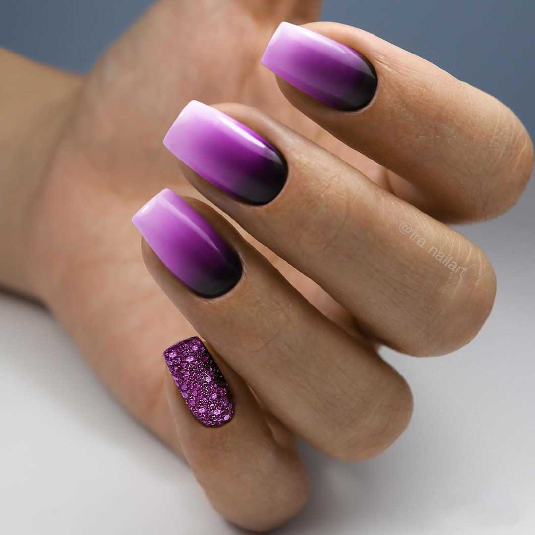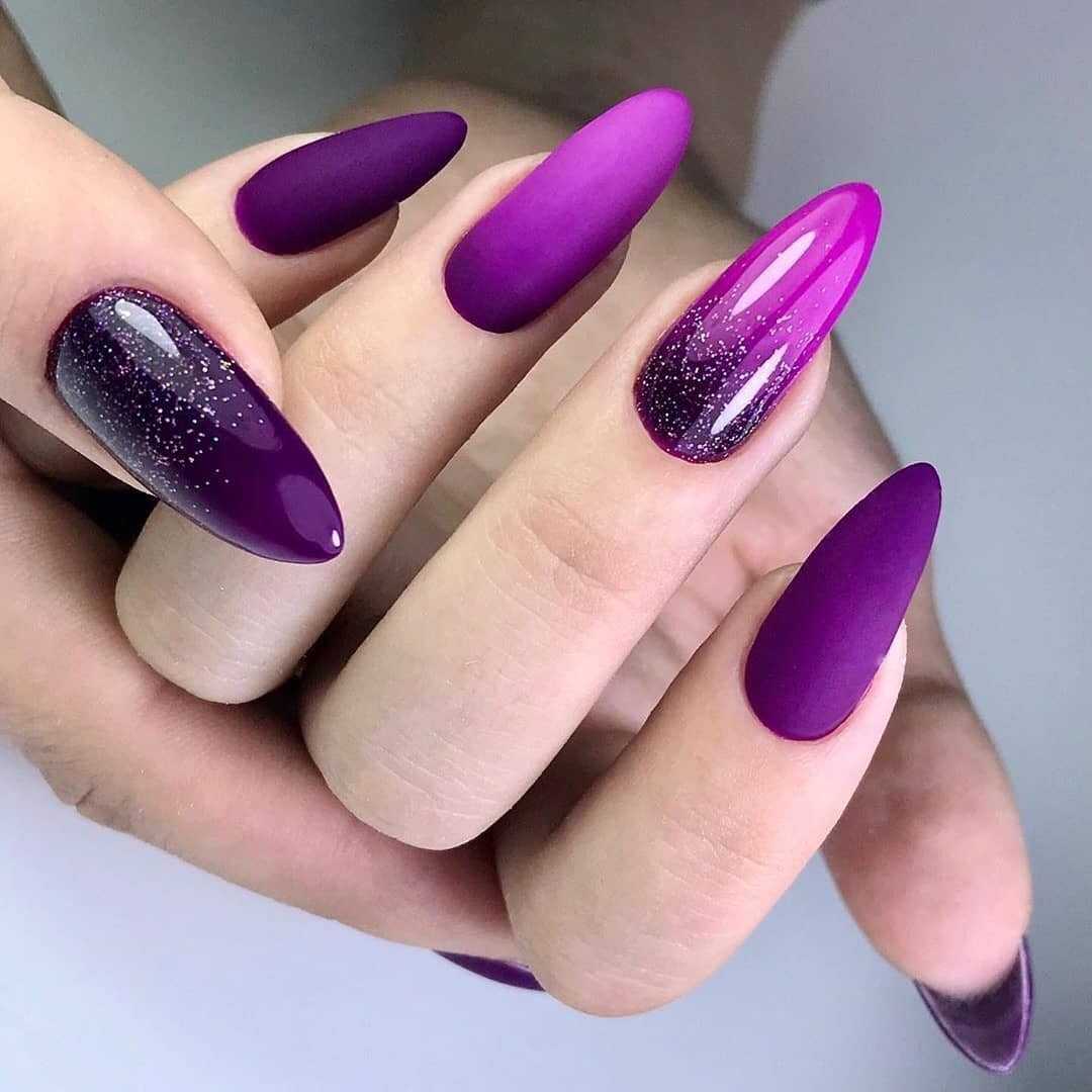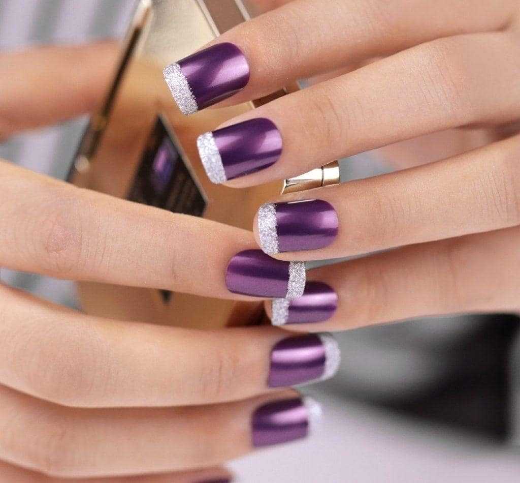 Фиолетовый дарит невероятно прекрасно настроение и улучшает творческие способности. Френч выполненный в глубоком фиолетовом тоне, никого не оставит равнодушным. Очень интересно создать маникюр в глянцевом и матовом покрытии, где фиолетовый отражается с новой силой.