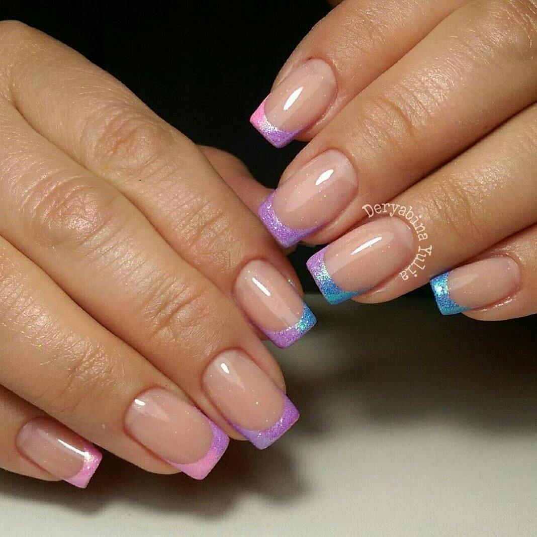 Разноцветный френч — это всегда праздник, отдых и беззаботность. Лучший выбор на летний сезон, когда вы едете в отпуск. На ноготках одновременно могут сплетаться до 20-ти разных оттенков, которые мастер умело сочетает друг с другом. Ограничений в подобном виде маникюра совершенно нет, поэтому будет легко и просто создать нечто свое оригинальное и уникальное.