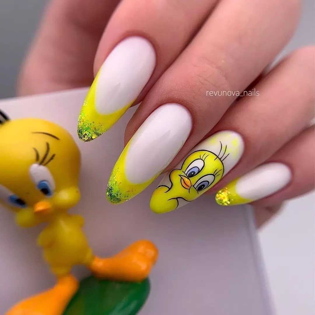 Можете дополнить свой френч желтым цветом, благодаря широкой палитре желтых оттенков, дизайн может быть актуален не только весной и летом.