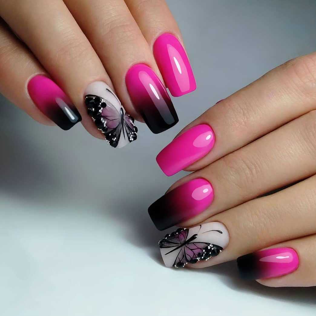 Градиент — необычный вид маникюра, когда один цвет постепенно перетекает в другой. Прекрасно подходит для средних и длинных ногтей. Расцветки ногтевой пластины допускаются самые разные. При градиентом френче ”улыбка” как бы расплывается по ногтю, меняя оттенки.