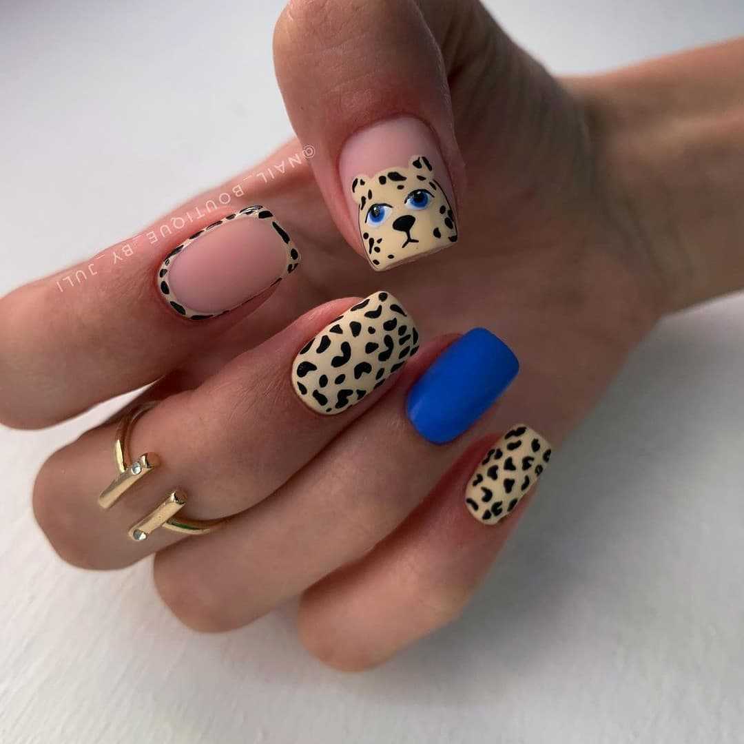 Красивые и стильные френч-дизайны 2022 присутствуют в самых главных модных тенденциях нейл-арта. Одна из идей этого года для стильного французского маникюра – лаконичные и минималистичные детали и элементы, основанные на природных, геометрических и абстрактных мотивах. Среди этих дизайнов – классический френч с тигровым принтом, украшающим один ноготь.