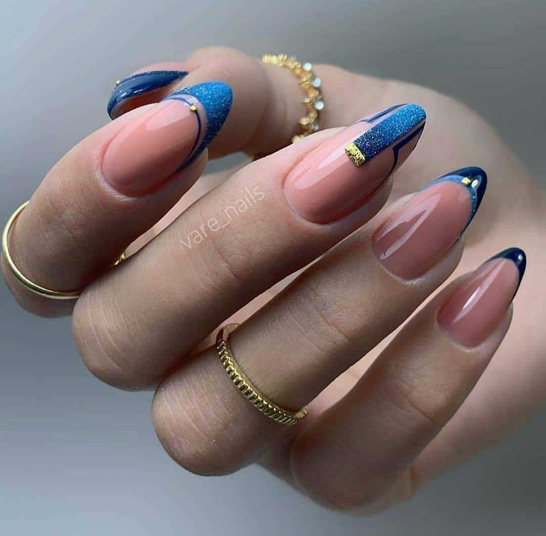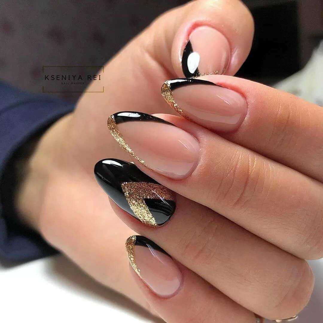 - золото. Здесь что-то новенькое, ведь 2023 год предлагает сделать интересный шаг: сочетать классический гель-лак и золотые блёстки. Решение спорное, но, безусловно, оригинальное.