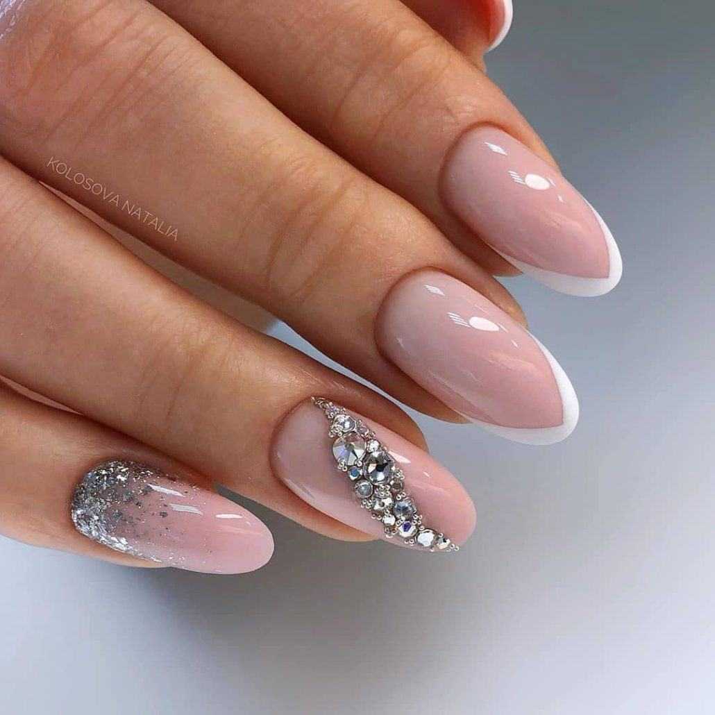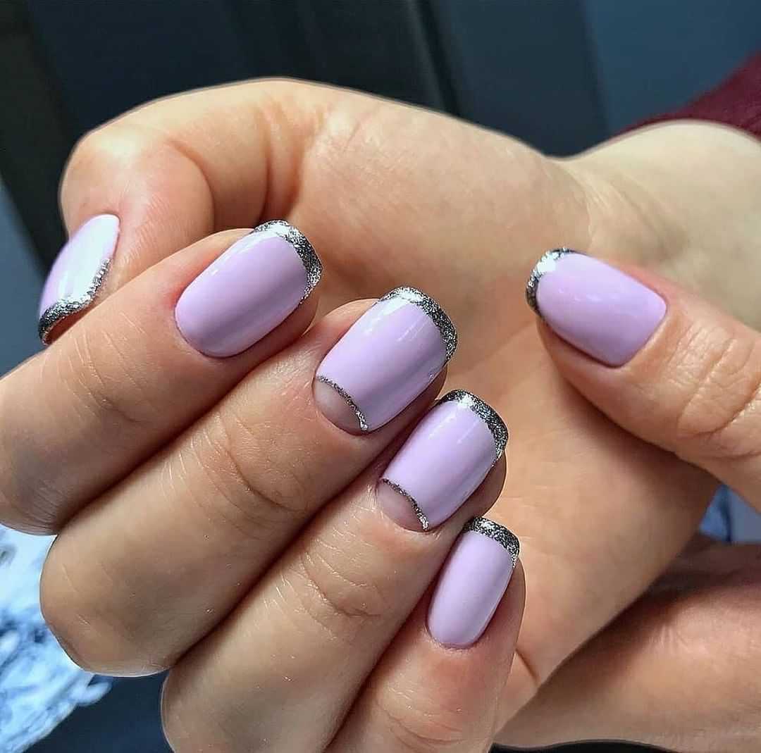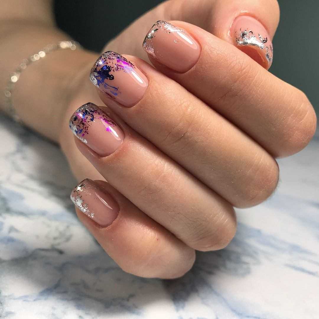 - френч с блестками — сияющие частицы можно заложить в основу или в финишное покрытие.