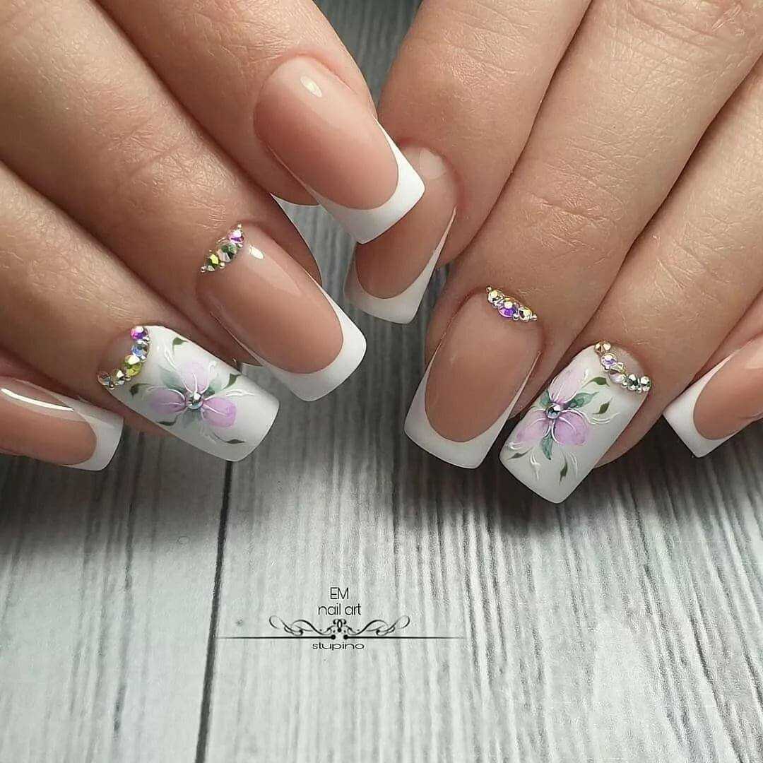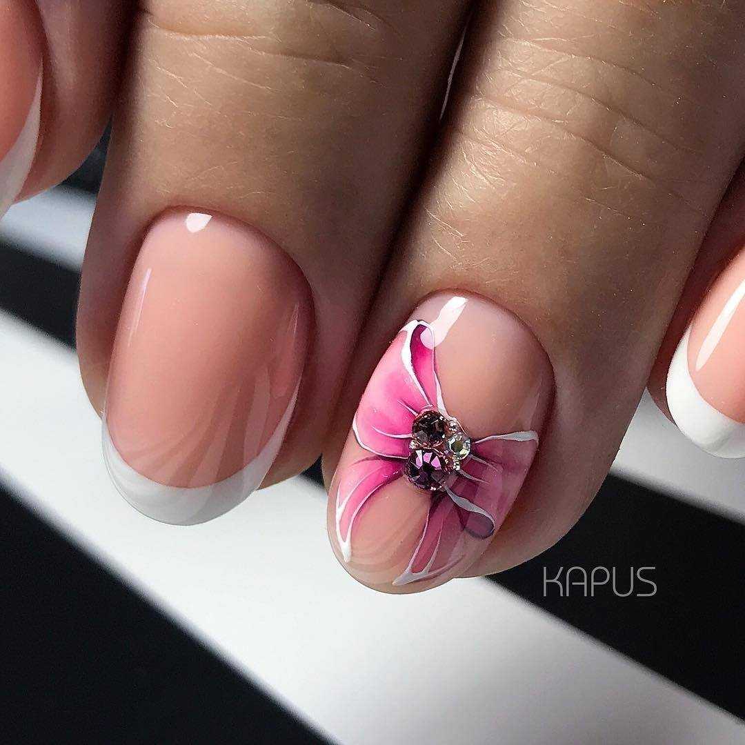 - цветы в качестве дополнительного дизайна — на 1-2 пальцах полевые цветы в нежных тонах, на остальных нанесен френч;