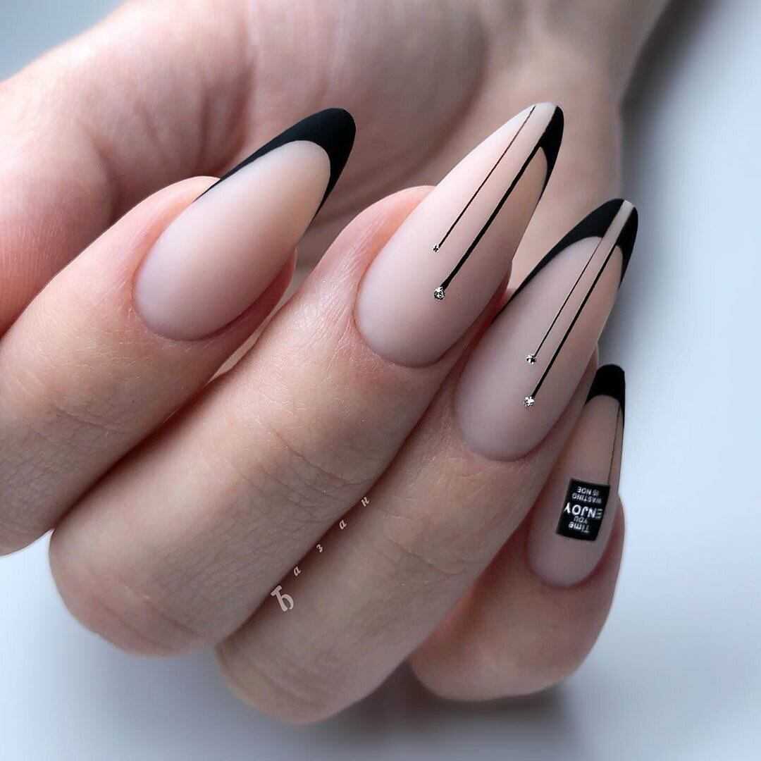 Начнём с модных тенденций, которые 2023 год вносит в сферу маникюра. Как и в классическом, белом исполнении, чёрный френч имеет главную идею — сдержанность, простота и элегантность. Нельзя пытаться изменить это, добавив в привычный френч множество страз и объёмных бусин, ведь в 2023-2024 года в тренде: