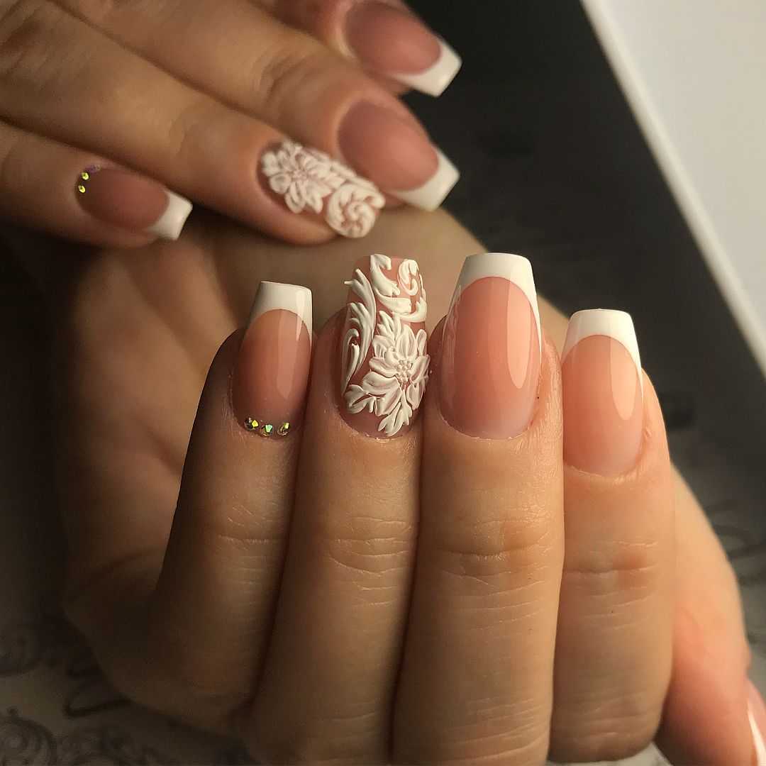 А напоследок мы оставили самый оригинальный маникюр френч с дизайном, который вас точно удивит. Конечно же, все это подойдет не на каждый день, но для громких событий и модных вечеринок – самое оно. Итак, смотрим лучший маникюр френч с декором 2023 года.