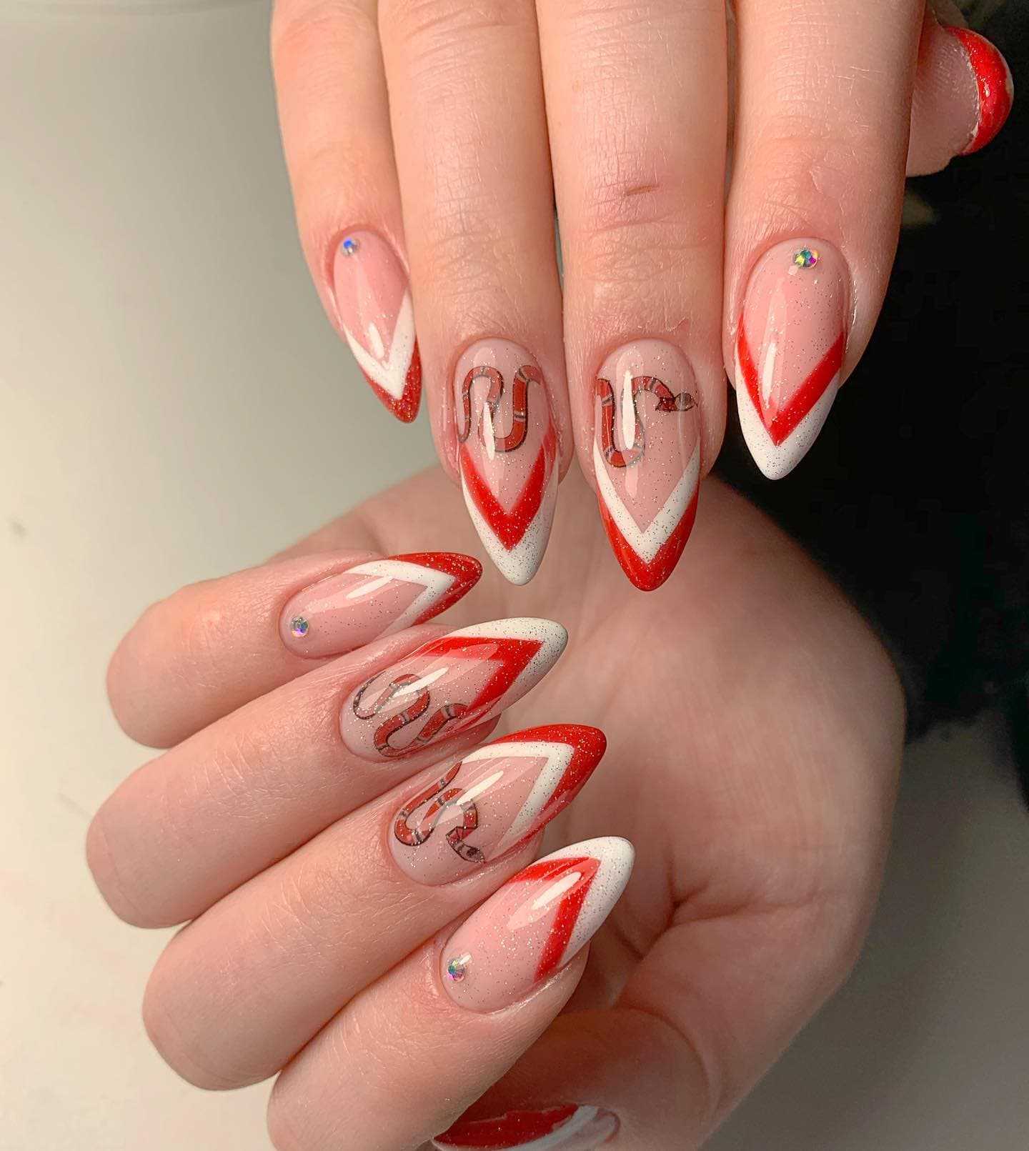 Данный дизайн ногтей дотсом станет хорошим вариантом для офисного стиля или мероприятия, требующего строгого образа. Вам понадобится лак для ногтей белого оттенка и ярко красного цвета, а также финишное покрытие и, конечно же, дотс.