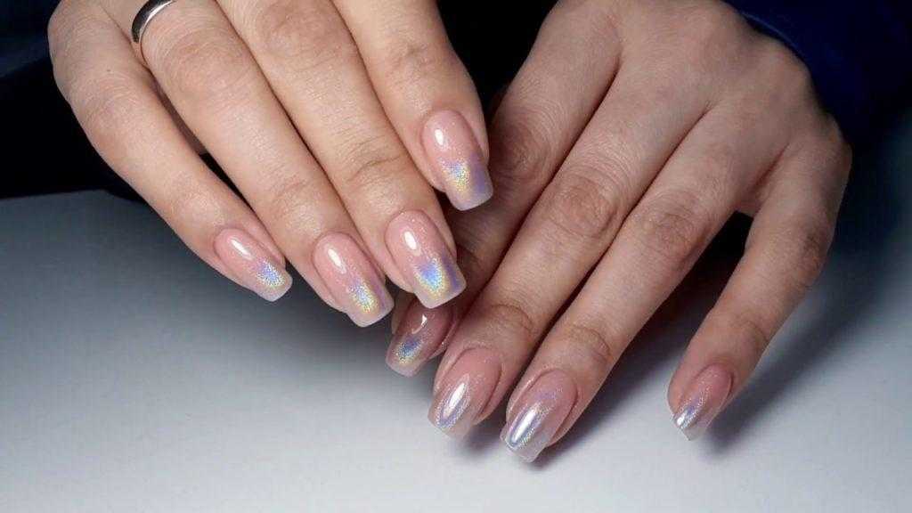 - Голографические блёстки, образующие перламутровые оттенки, использование которых целесообразно на основе из гель – лака;