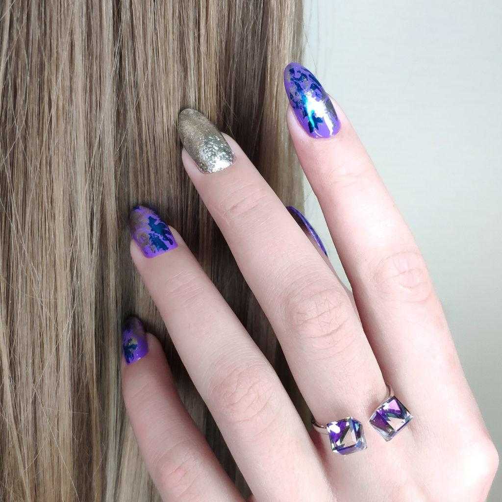 Фиолетовый маникюр с втиркой